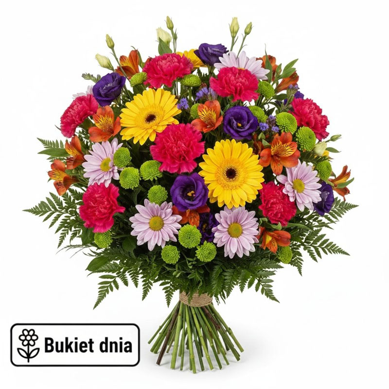 Bukiet Dnia to świeża, codziennie inna kompozycja tworzona przez lokalną florystkę z najpiękniejszych kwiatów dostępnych danego dnia w kwiaciarni. Każde zamówienie realizowane jest indywidualnie, a dobór kwiatów, kolorystyki i stylu pozostaje w rękach profesjonalistki, która zadba o estetyczną i spójną całość. W bukiecie wykorzystywane są całoroczne i sezonowe, starannie wyselekcjonowane kwiaty, dzięki czemu kompozycja zachwyca świeżością i naturalnym charakterem.