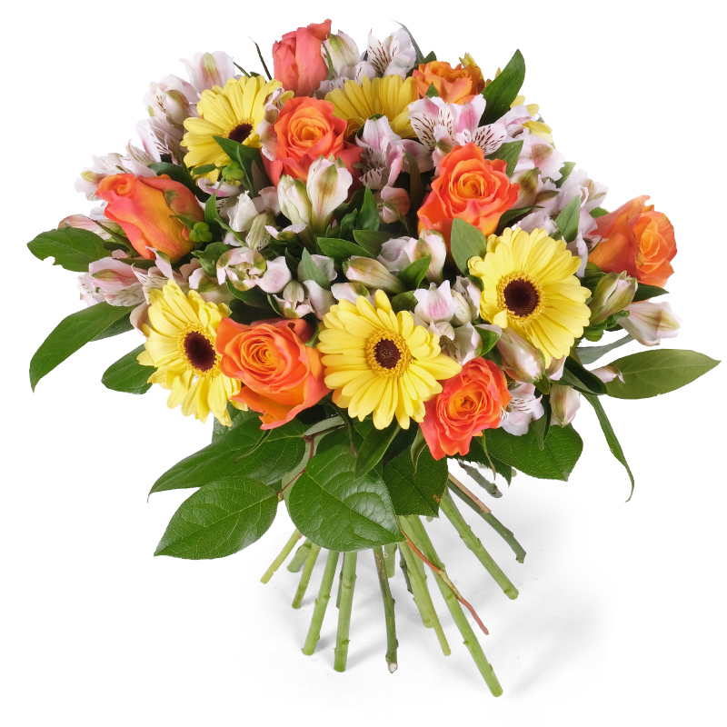 Starannie dobrane róże, gerbery i alstromerie w otoczeniu świeżych liści tworzą bukiet, który mówi sam za siebie. Przemyślana konstrukcja i dbałość o detale pokazują, jak wiele znaczy dla Ciebie obdarowana osoba. Dodaj liścik lub zrób anonimowy prezent!