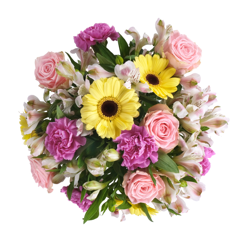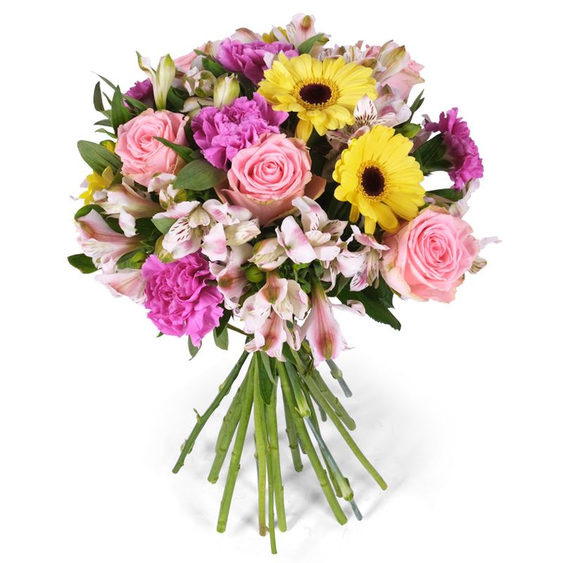 Delikatność róż spotyka radość gerber w jednej kompozycji. Ten starannie skomponowany bukiet stanowi doskonały przykład tego, jak różnorodność może tworzyć harmonię, a kontrasty wzajemnie się uzupełniać, ponieważ łączy w sobie cztery bardzo różne gatunki kwiatów, z których każdy wnosi swój unikalny wkład w ostateczny efekt wizualny i emocjonalny całej kompozycji.