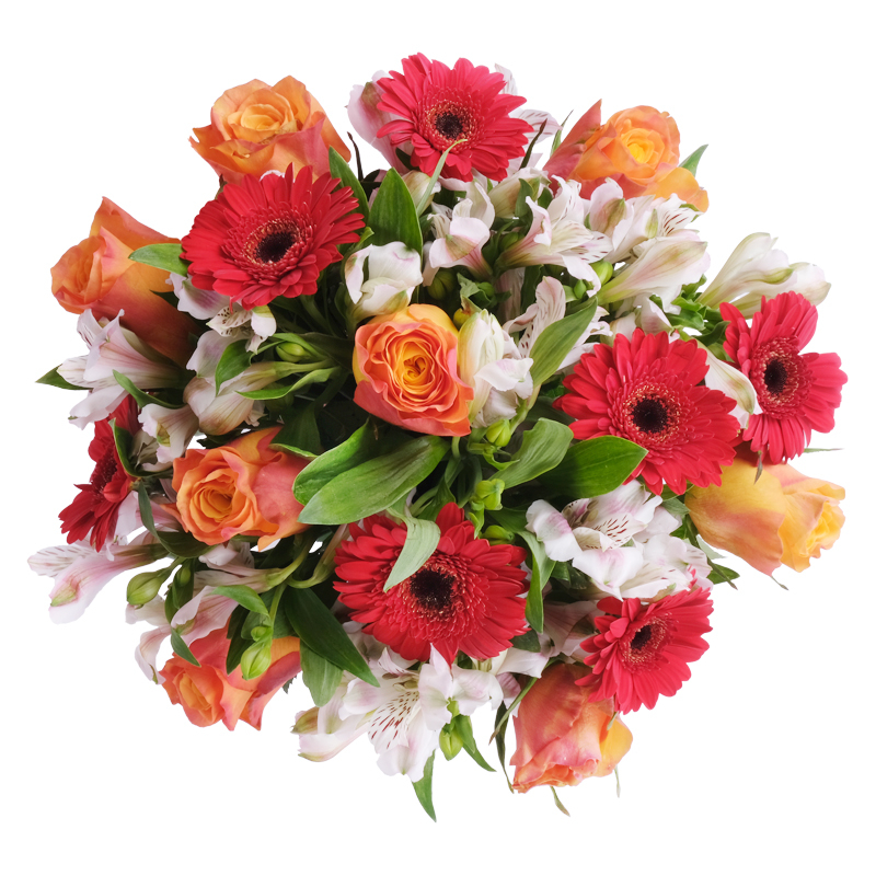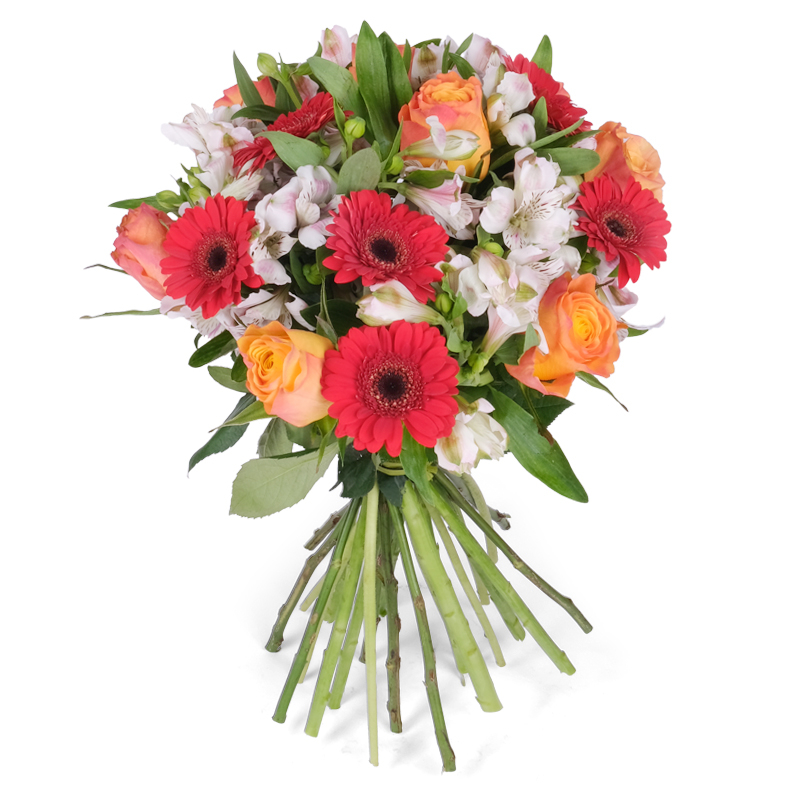 Damska kompozycja trzech szlachetnych gatunków kwiatów. Róże stanowią fundament elegancji, gerbery dodają energetycznych akcentów, alstromerie tworzą delikatne dopełnienie. Świeże liście podkreślają naturalny charakter bukietu. Perfekcyjny podarunek dla mamy, żony czy siostry!